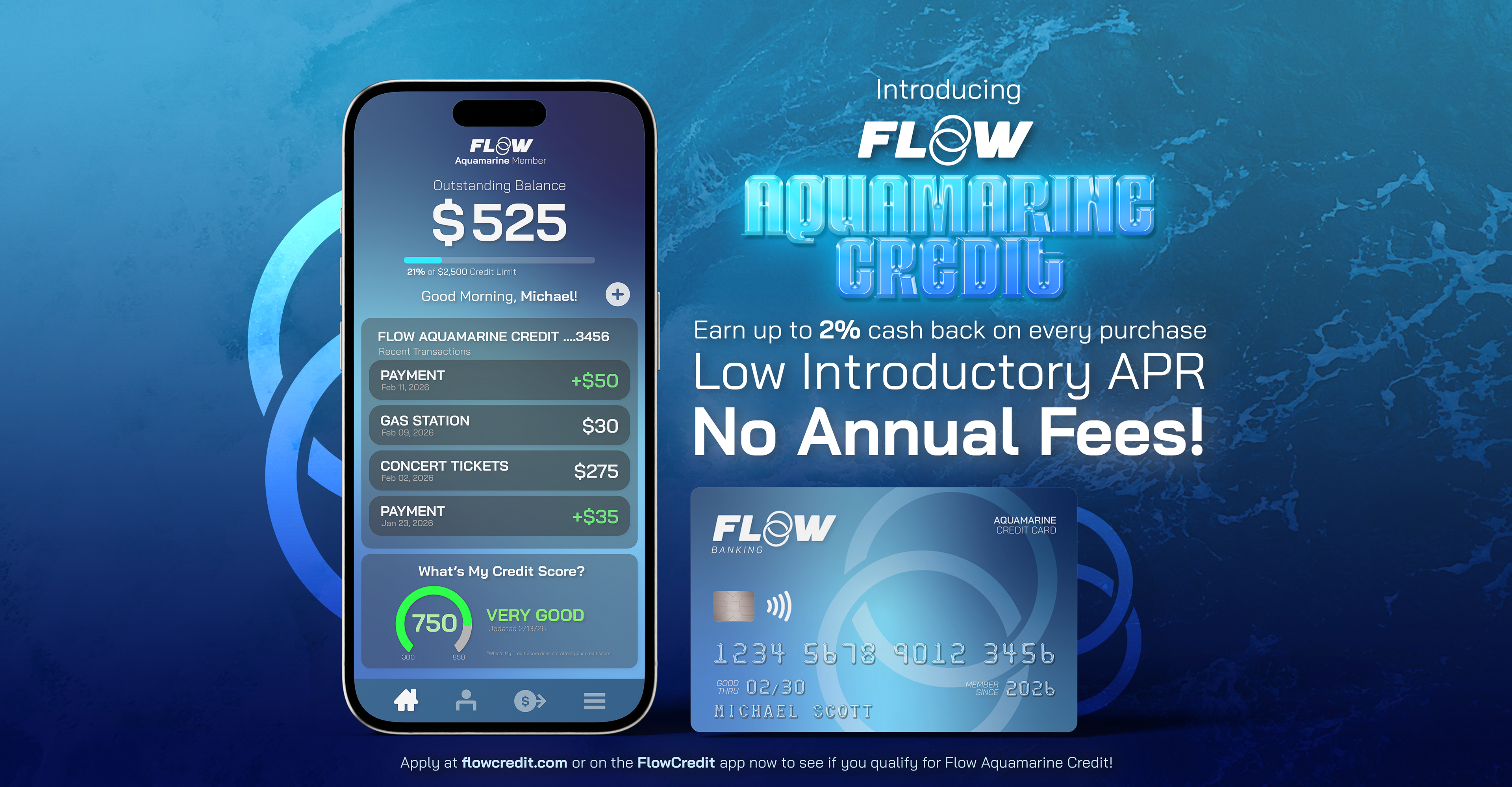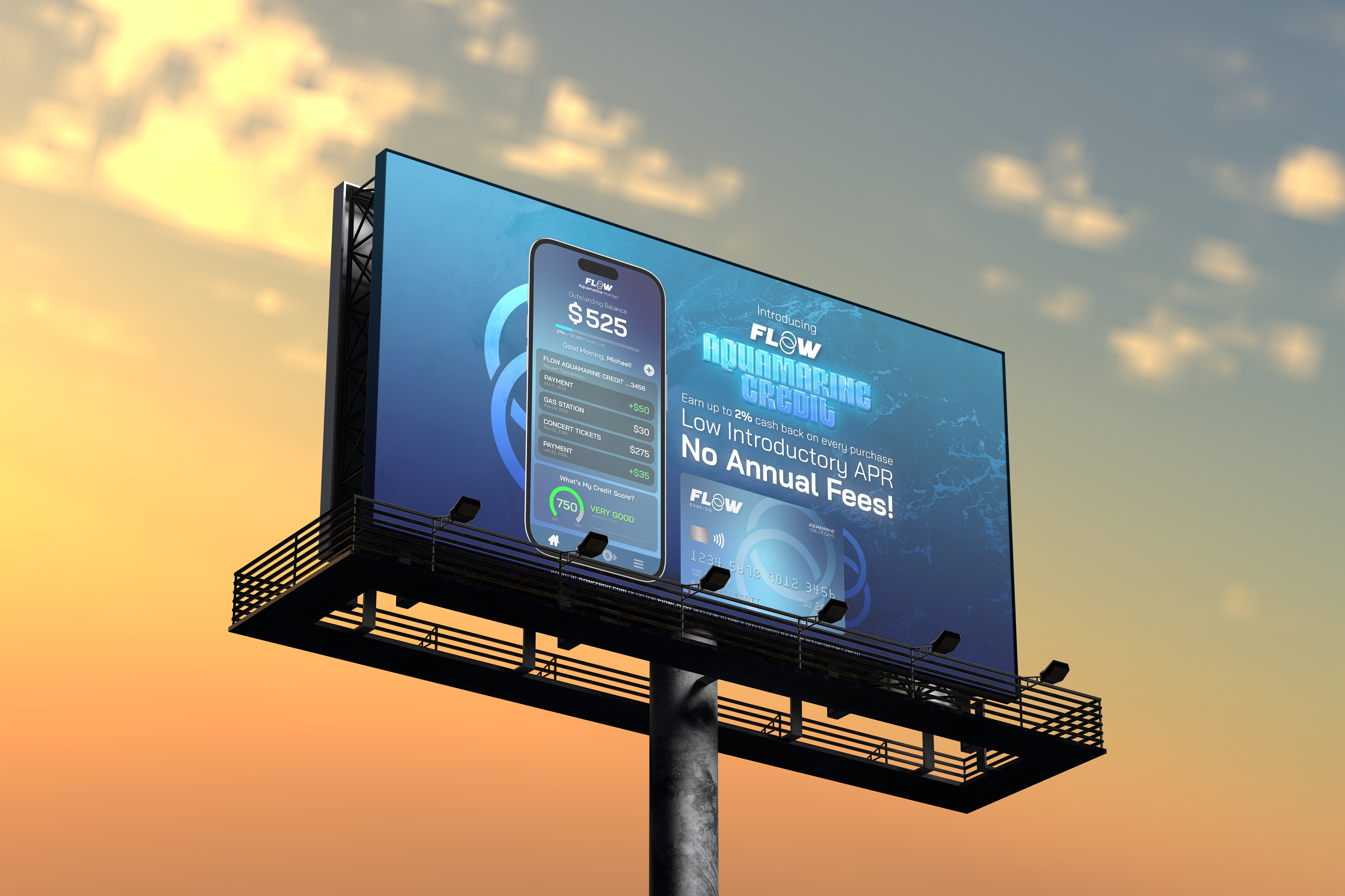For a personal project, I created a banking company called Flow Banking. Flow Banking is a banking and financial services company that strives to benefit low-income and everyday consumers with ease. “Flow” resembles the steady and stress-free experience of using Flow Banking and the Aquamarine and Cerulean hues of Flow's branding symbolizes the calm, stress-free experience you have with Flow Banking.